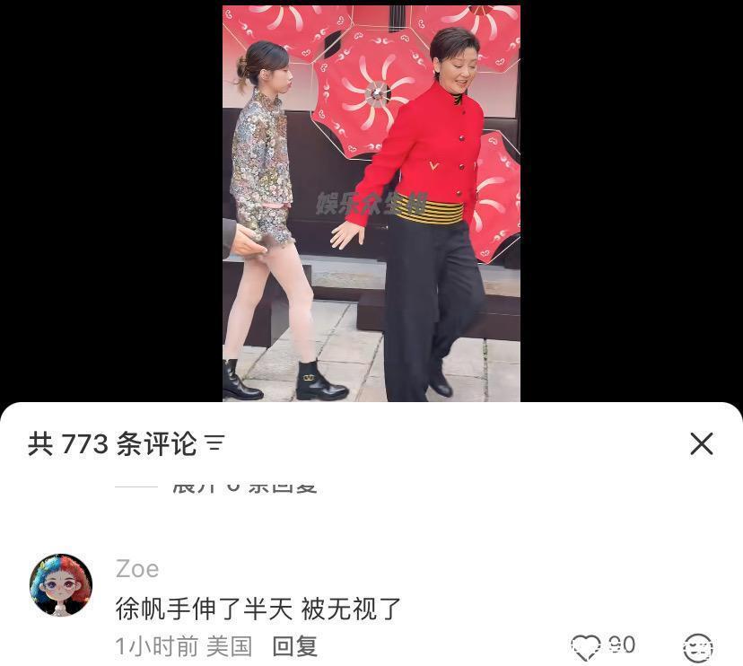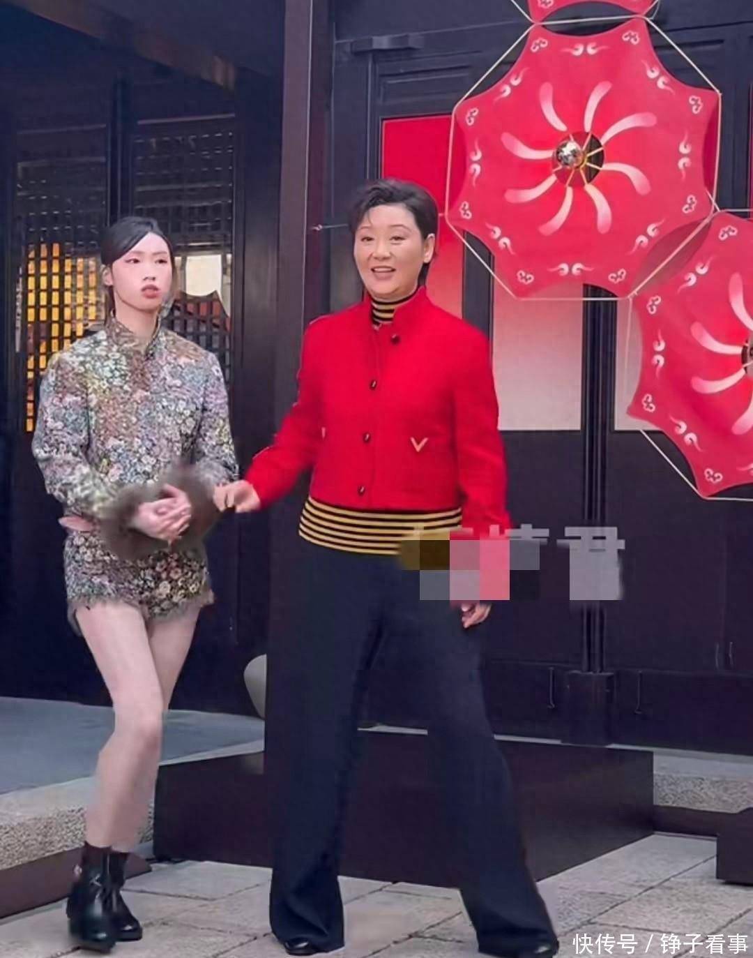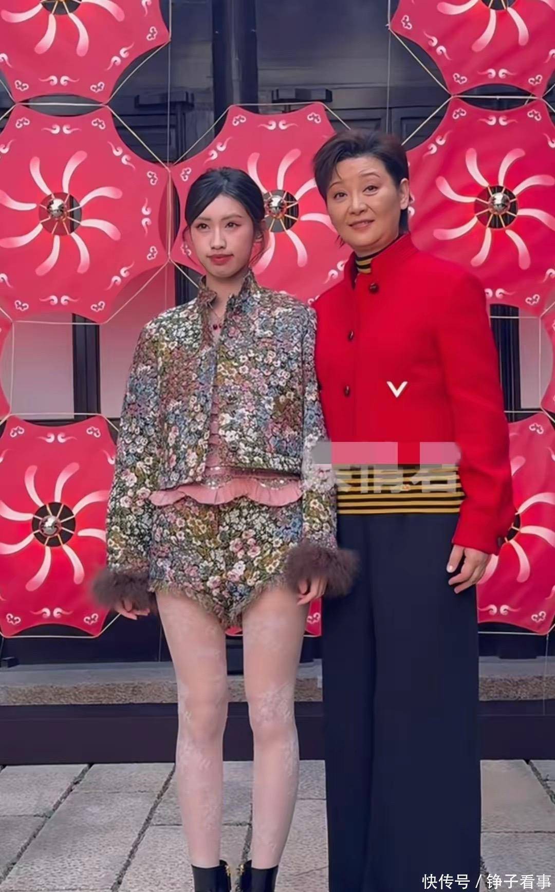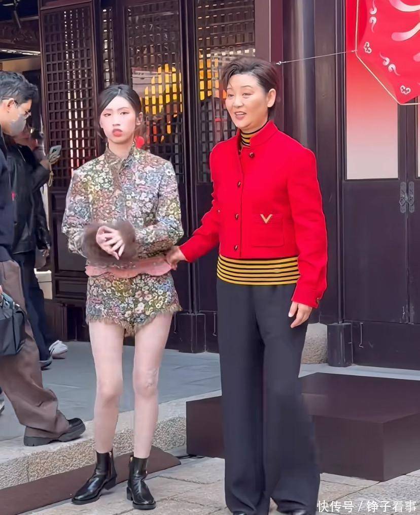 可轮到徐帆和养女徐朵,画风就有点跑偏了。徐帆一身红短上衣配阔腿裤,利落是利落,但肤色明显比平时深了好几个度,像是刚从海边晒回来。更扎眼的是徐朵——亮片套装搭裸色刺绣打底裤,别说21岁的青春感了,连基本的协调都谈不上。